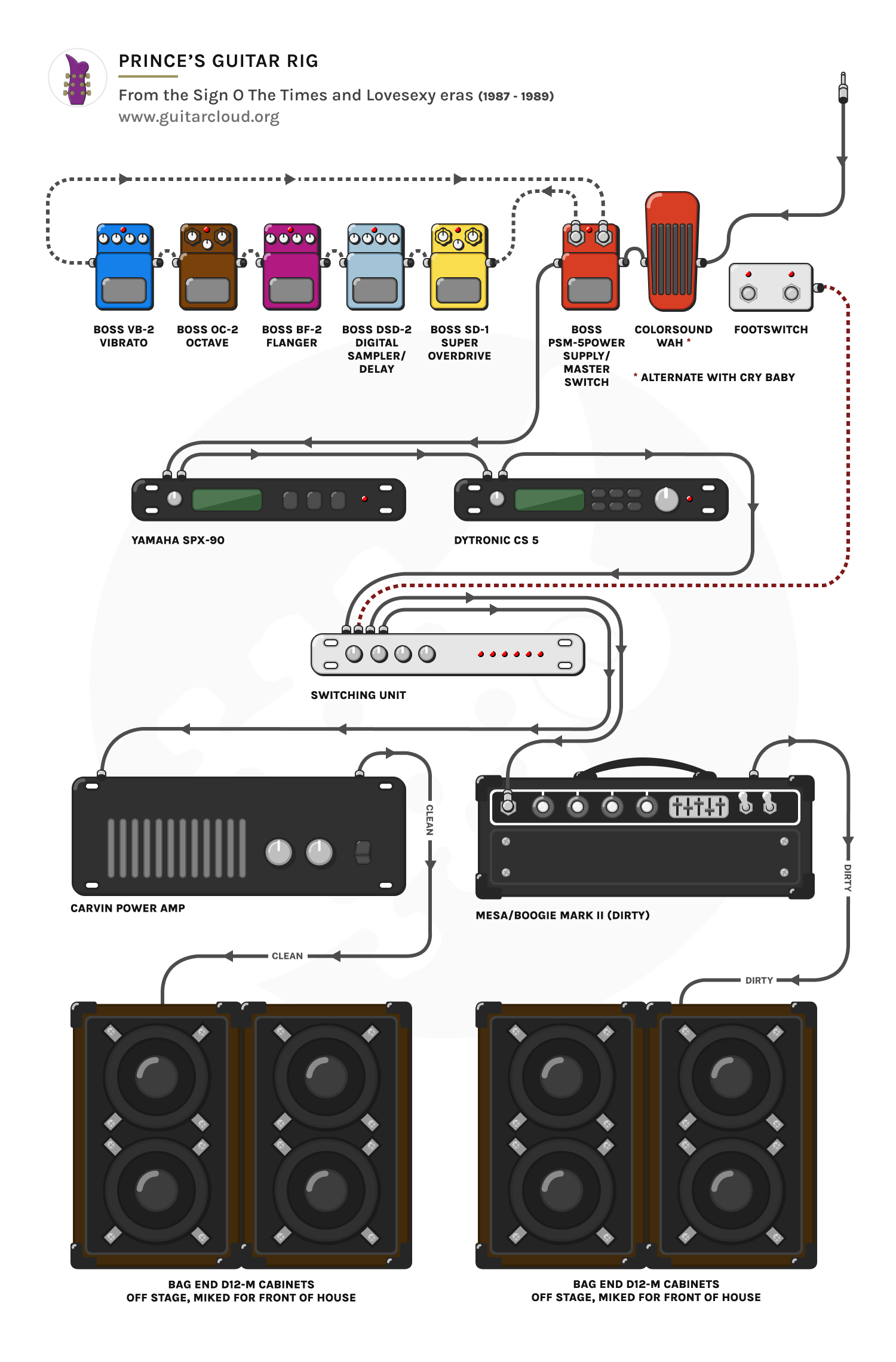 Sign O The Times was recorded between March and December 1986 at Sunset Sound studios, Prince's Galpin Boulevard home studio and Le Zenith, Paris. For details of the instruments used by the Revolution on “It's Gonna Be A Beautiful Night”, see the Parade page. The Black Album was recorded between October 1986 and March 1987 at Sunset Sound and Galpin Boulevard, using similar equipment to the Sign O The Times sessions. “When 2 R In Love” was recorded in October 1987 at Paisley Park. See the Lovesexy page for more information about this session.